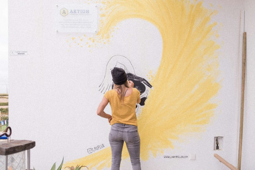 Mural Aktion Hostel Mural Client: Aktion Hostel, Ericeira, PortugalType of work: Mural artworkYear: 2019 GRRLS Barrels Wall outdoor communal area Mural detail in private room SIGN UP FOR NEWSLETTER & follow my journey on social media Instagram YouTube Related
